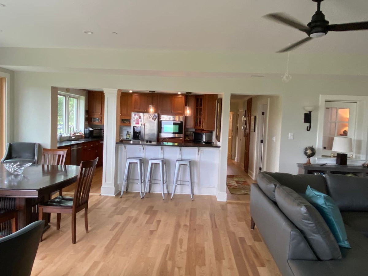 March 2025 5.00This air b&b is in a beautiful setting with plenty to do (kayaking, hot tub, fire pits, bird watching, etc). It's also very centrally located so we could easily get to more populated areas in no time. The most stunning part of the house is the master suite in my opinion which is on the upper level (the upper level is shared with another apartment, but you don't really hear the air b&b tenants of this suite and it's completely separate with a separate entrance). Stunning views from both the master bedroom and the bath tub in the master suite! The downstairs is also quite lovely with two regular bedrooms, one small bedroom, and a sun room that has a pull out couch (we didn't use it). It's a lovely house to entertain in. It has personal photographs to the owner downstairs that speak to the family's history. The owner is communicative. The overall experience was quite lovely. We'd be happy to return.