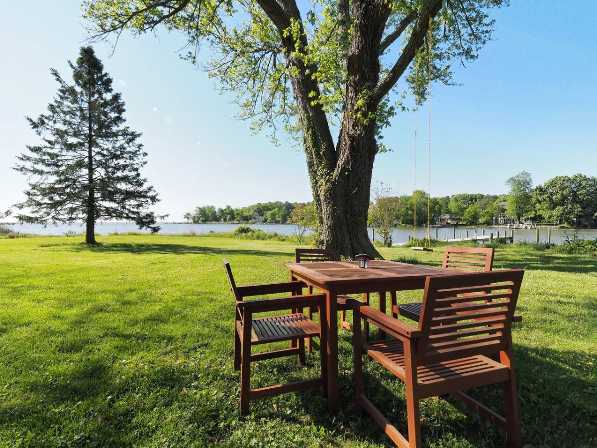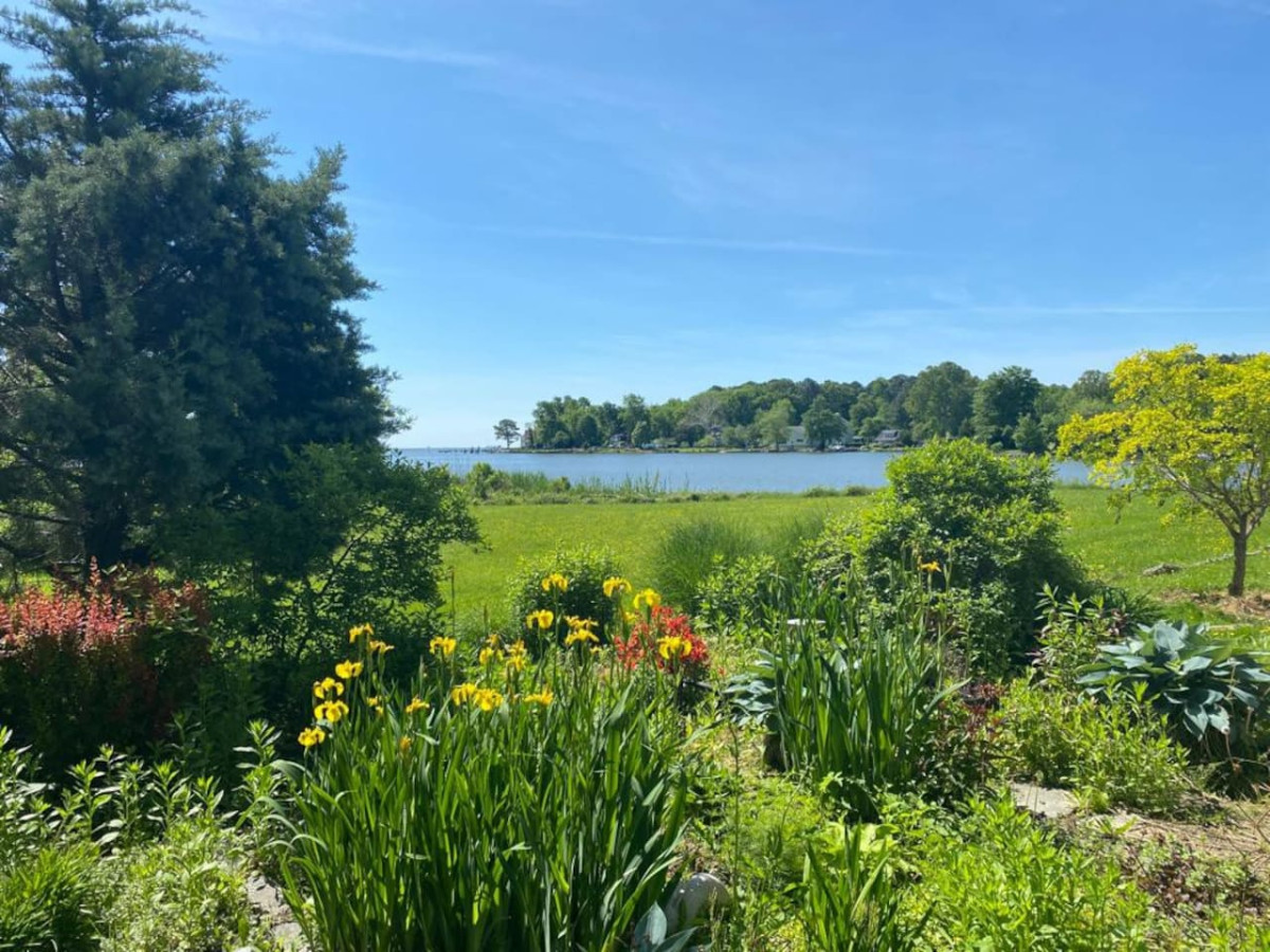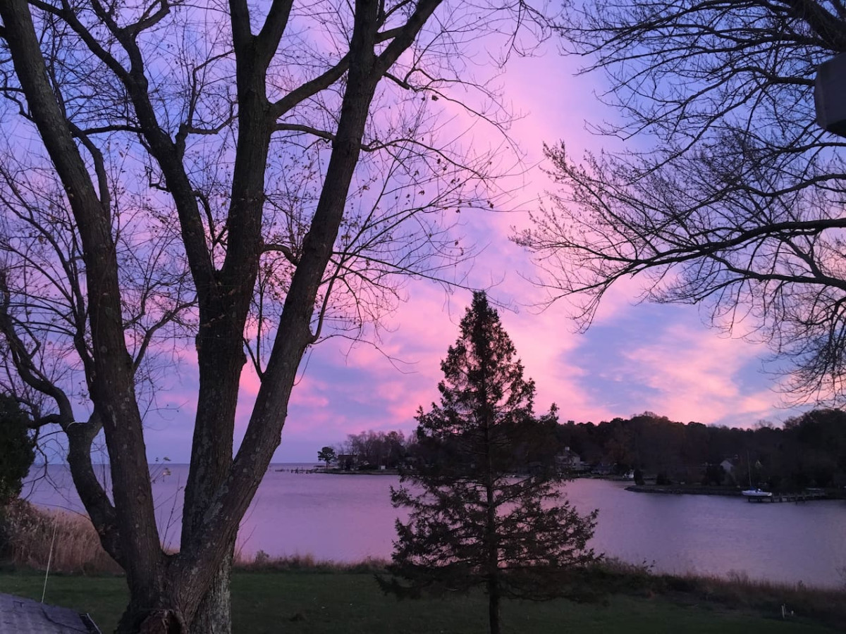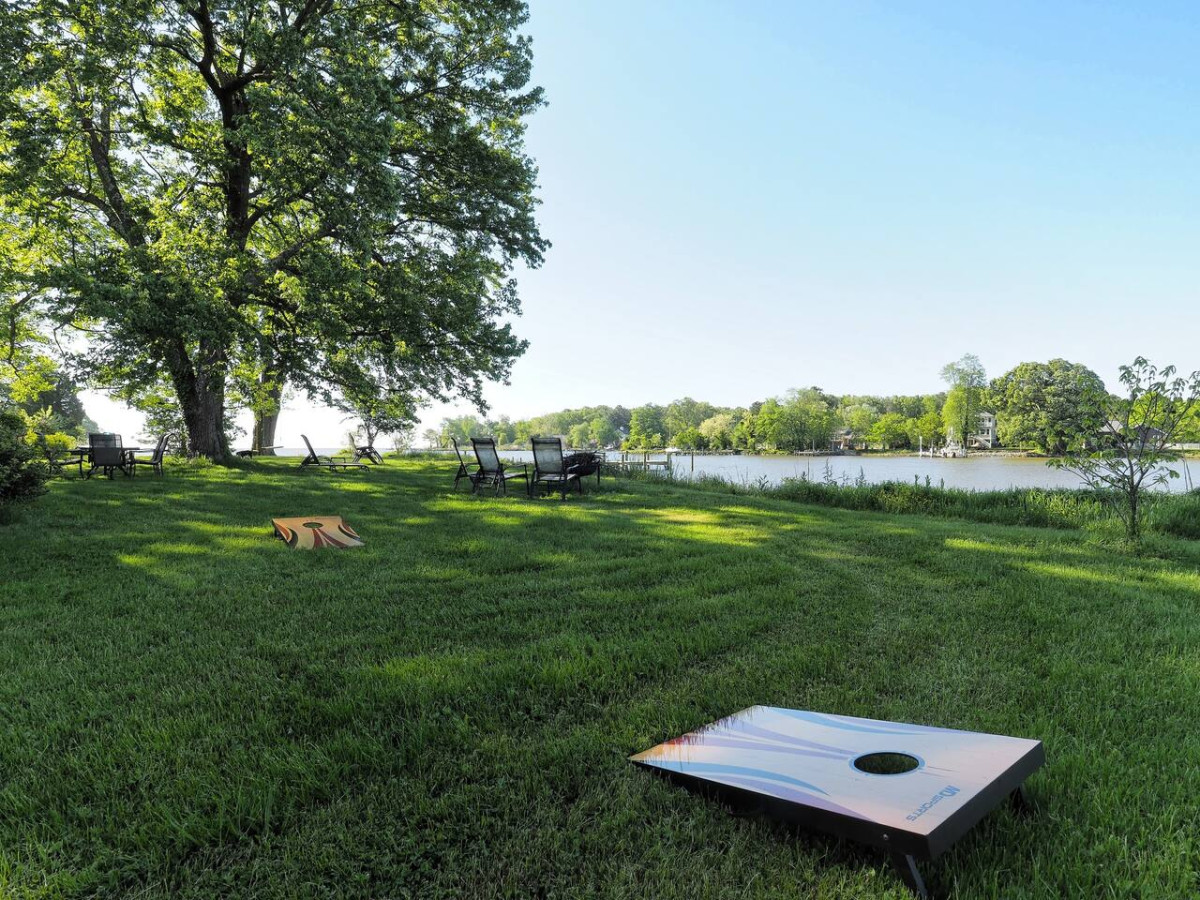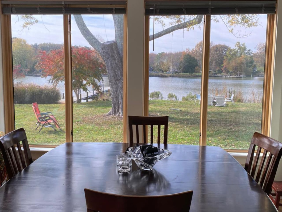 This is a fabulous 4-5 bedroom 3-ba House, affectionately called Porchlandia, with spectacular views on a lush, waterfront point! Shady waterfront lawns & sunny pier, breezy open spaces, sparkling views & wildlife, hidden but close to services. Couples & groups love our wonderful, nature-filled spot, a fun, relaxing, serene retreat on the WEST shore of the Chesapeake (close proximity to D.C., Annapolis, Baltimore)! Crabbing, kayaks, fire pit on two-acre country-like spot. Porchlandia is a slightly smaller, less expensive version of the whole house listing. This means the owner (or another individual/couple) could be in “The Flat Plus,” which is a completely separate upstairs apartment with its own entrance. IMPORTANT NOTE: This is an incredible rental for fairly quiet parties. While you have the whole house except for the separate two-room locked-off apartment upstairs, it is still all under the same roof, so renting it means you accept that you may (or may not) hear others in the house. You also agree to be sensitive about noise levels, esp. when in kitchen and bedrooms. (Living room/Morning Room are more separate.) Below is a more detailed description of the rooms and layout to help you see how we can accommodate your group. Raised Ground floor: - Bedroom 1: "Soft Swedish Carolina Light” (aka The Green Room), with a double bed, is the closest bedroom to the water, has two waterfront windows and a glass door leading out to the water. Bathroom is two steps outside your door. - Bedroom 2: “Sweet Memories of Changzhou" (aka Jamie's Room), has a side window water view and a double bed, with the same shared bath two steps outside your door, making this & Soft Swedish Carolina Light a good option for people who want two bedrooms close together. - Bedroom 3: "Dot's Room" (aka The Mudroom) is smaller and has a twin bed with a pull-out twin mattress underneath. Designed as a mudroom, it has its own separate French door entrance and also houses a washer and dryer in its closet. It can share the same bath at the end of the hall or, alternately, the Mermaid Bath at the top of the steps. - Study/Optional "Bedroom 4," "The Morning Room," (a glass study off the foyer that can be converted to a bedroom), is a calm, beautiful space with a bar-height glass table and glass coffee table for relaxing in the morning sun or any time, three walls of windows for an intimate view of both creek and bay, a queen-sized sleeper sofa, and a view of the double-sided fireplace in the foyer. It also has a sliding glass door onto the screened porch that could be left open for those who like a natural sleeping space with cricket or bird songs. In the near future (supply chain issues) it will have French doors with cross-reed glass that can be closed off for greater privacy. - An L-shaped Italian leather couch in the Great Room provides a comfortable extra sleeping space. We provide bedding (please let us know in advance if you'd like to use it). - A small, but full, marble tile bathroom accommodates the downstairs. - A fully-equipped "CREEK VIEW" kitchen has leathered granite countertops, bar-height stools, and all the many of the spices, etc., you'll need. - The Great Room has 9' ceilings and a 16-foot sliding glass door that opens onto the screened porch, making it into a LANAI and almost doubling the size of the living room. This same porch opens onto the Morning Room as well, so a very large, fluid space can be created for gatherings. - The gas fireplace in the Great Room is double-sided so it can be viewed also from the Morning Room or from the entry foyer, and has remote control for five levels of flame and heat. The 50" state-of-the-art TV above it is directly wired into the internet (no dependence on WiFi) and there are also speakers for bluetooth-controlled music. - The dining room part of the Great Room has a large Bay view dining table for formal dining, as well as swivel chairs for casual snacks on the water. The sliding doors and windows on both sides can give the feeling of being outside while still indoor and close to the kitchen. The sliding doors also go directly onto the deck making BBQing and outdoor dining easy. --Sliding glass door opens from the living room onto a state-of-the-art screened porch created out of white pillars with expansive, transparent screens. The porch, which has a full couch, gas firepit, rocking and dining chairs/table leads out to the deck while also opening, via glass slider, to the Morning Room. The upstairs configuration: - Bedroom 5: "The Sunrise Suite" Master Bedroom has a queen-sized bed, windows galore, a wet-bar kitchen, built in remote-controlled electric wall fireplace and TV, Bluetooth speakers, sitting area, and dining area, as well as outdoor lounging/dining on its balcony. It is adorned with a huge master bath with a "retro" natural teak vanity, large rain shower (w jets, bench, and grab bars) and a roomy 68” ivory soaking tub and toilet with spectacular corner-window views of the Bay (best "toilet view" ever!). - The smaller "Mermaid Bathroom" in the hallway has a “step down” shower and is a common bath that creates a second option to accommodate downstairs guests. While the downstairs will be very clean, some of the owner's private possessions will be present since this is also her private residence for certain times of the year. So far, folks have loved this space and were happy to agree to this special situation. :-) We provide helpful amenities for all seasons like throw blankets for movie nights, extra towels, big floaty things for playing off the pier in summer, and other small touches that can make all the difference in creating your happy, memorable experience. You'll enjoy gorgeous views from the screened porch, decks, and upscale sliding glass windows and doors galore....take in the moon and stars, both sunrise and sunset views, and sparkling water, especially dazzling in fall and winter. Enjoy the gas bbq, firepit, tree swings, double hammo