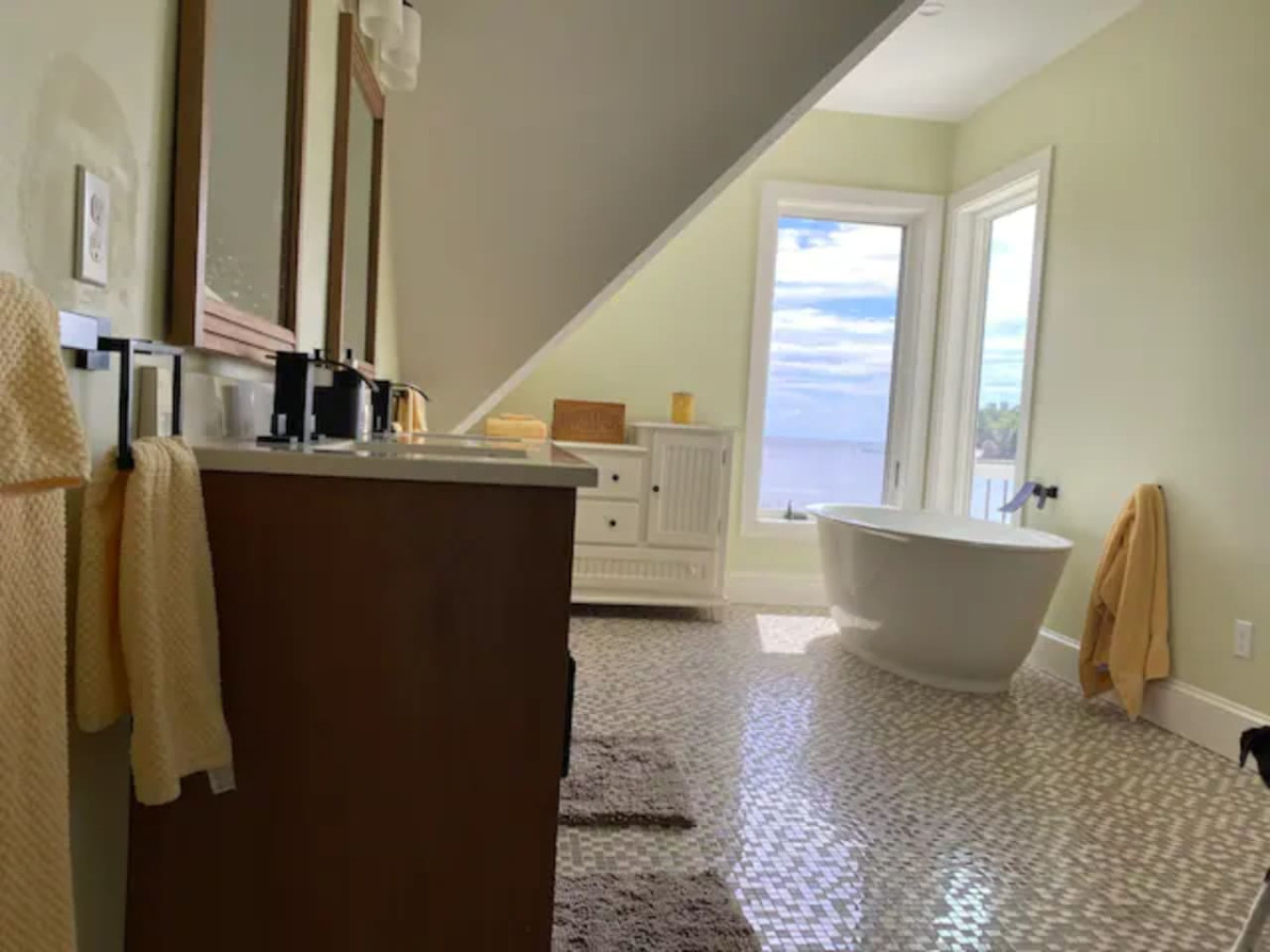 April 2025 5.00The soaking tub with water views in the wonderful primary suite was a treat.** Hot tub also lovely, even under the rain. So many cozy places to sit and relax. Fabulous bird watching!! Lots of water related activities. Great place for a family or group retreat. Shawn is super helpful.