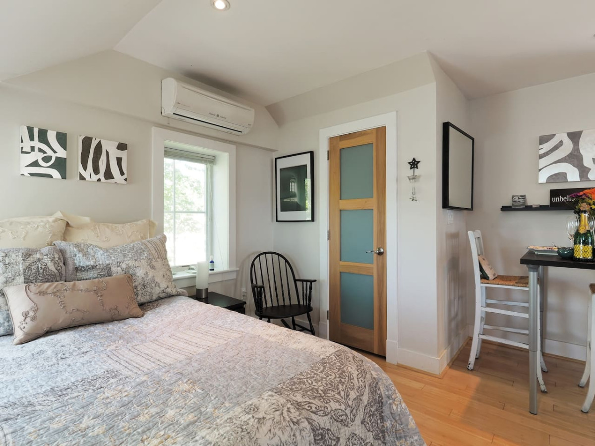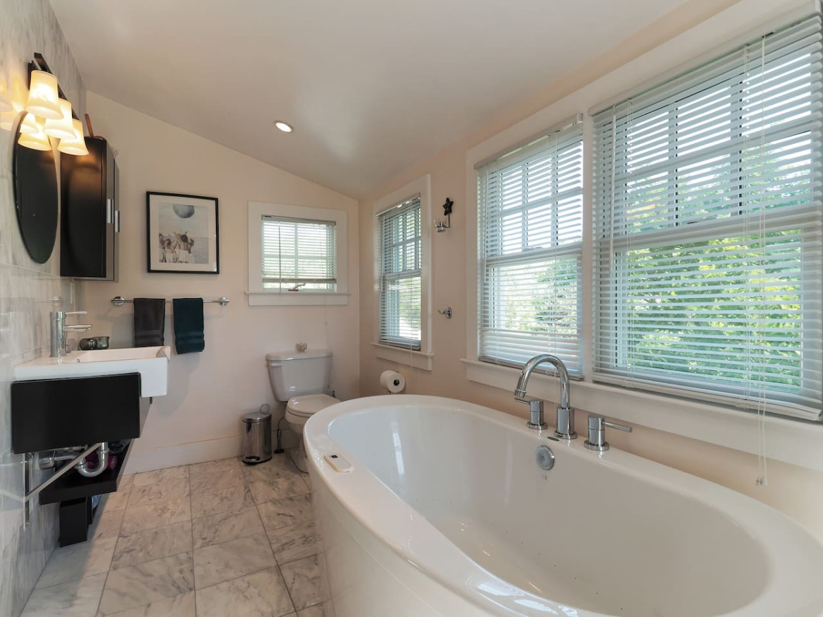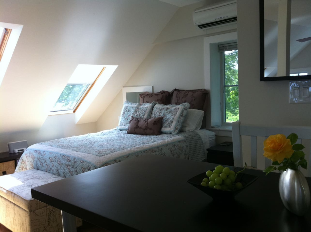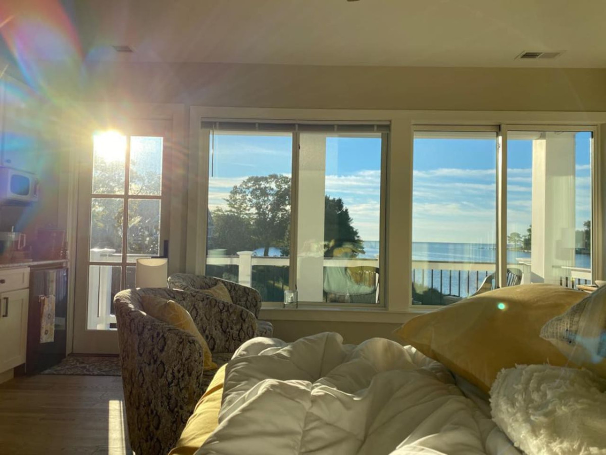 Your party will have two lovely private spaces, connected by a door, on the second floor of the Chesapeake Paradise House. 1) THE FLAT PLUS ["The Ascended Space"]: Light, modern, open studio loft, creek-view skylights. A private apartment, completely separate from our house downstairs. The Flat has its own separate entrance on the waterside of the house. Luxurious marble bath with deep freestanding tub and large European shower. Leather couch, writing desk, well-appointed granite wet bar/kitchen with microwave and refrigerator/ freezer, bar-height table, electric "wood stove." The Flat has a queen bed, wireless internet with varied workspaces, flat-screen TV/DVD player, HDML cable for Netflix, iPod dock. The Flat is a completely separate space (private enough to often be used by honeymooners!) with its own entrance. 2) THE SOLARIUM (with optional bathroom): The Solarium is unique in that it has windows on all three sides for both sunrise/moonrise and sunset views. This very peaceful sun-drenched space that is attached to The Flat by a glass sound-dampening door. It has a wonderful, white leather couch and double bed, its own small balcony. You access the Solarium from The Flat by taking walking up two steps & going through the sound-dampening glass door. Many guests take a break for a fun, restorative, or romantic retreat; others come to Light Landing to complete writing, art, or other projects. We've had countless happy guests come for their private anniversary, birthday, and even honeymoon, along with their wedding party, all of whom felt they had plenty of privacy and so many have become “regulars!” Even though you can read hundreds of thrilled reviews below, we have captured one that conveys the spirit of the Light Landing experience: “My husband and I had the greatest experience at Shawn’s place. We were greeted by Shawn with a handful of daffodils that she freshly picked out of her garden and placed in a sweet vase. Those little, thoughtful details are all over this Flat! Some of our favorite things about this stay were the super deep bathtub, all of the natural light facing the beautiful bay (there are so many windows!!), the cleanliness, our privacy, the incredibly comfortable bed, and pretty much everything! The descriptions don’t do this place justice. Our expectations were exceeded in every way, and we are already planning our next visit. After exploring D.C. or Annapolis on a couple of the days, we found ourselves excited to get to escape back to this serene gem." Wireless internet (or Ethernet cable for direct connection) with varied work spaces, SMART TV with 40” flat screen and free Netflix or HDMI cable, and for music, a wireless Bluetooth speaker or DVD player with access to owners extensive DVD collection. White ash wood floors and whole house fire sprinkler system throughout. Totally relax and play in Light Landing's shady lawn and bright open spaces; bbq, and fire pit outdoors; tree swings and double hammock; English “tree gardens,” kayaks, crabbing, and our relaxing pier afford a peaceful and inspirational setting any time of the year for your stay in the Washington Metro area. Includes use of pier, screened porch, fire pit, gas BBQ, kayaks, swings, entire country-like acreage. We provide helpful amenities for all seasons like throw blankets for movie nights, extra towels, big floaty things for playing off the pier in summer, and other small touches that can make all the difference in creating your happy, memorable experience. We consider including children, but would want to have a conversation to make sure it’s a good fit for you. An option for bigger parties: Take a look at the whole house listing by searching "Chesapeake Paradise House-Stunning 7br4ba Waterfront" on VRBO. This includes a description of the bedrooms/bathrooms configurations and the various combinations of rooms that you can rent. NOTE: There is another romantic suite on your floor as well as other accommodations in the house, so while you have your own completely separate space, you may occasionally hear the owner or other guests. However, this has been the case for 14 years and we've always received stellar reviews. I’ve asked the guests in the Sunrise Suite to not use your small balcony and to leave the glass door and windows next to it locked to ensure both your and their privacy. FYI… at this time I have not decided whether to get blinds for the really big windows because the view is spectacular, and they are high enough so that no one can see into the living areas from down below and no one goes into the field. You will open your eyes to beautiful reflections on the water at night and gorgeous light in the morning. Even though there is a bed in the Solarium, most guests are choosing to sleep in the Flat, which is darker and more private. If you have a second couple or are using both rooms for sleeping, just know that the Solarium will have early morning light. So far, our guests have been thrilled with us, and we've been thrilled with them! What a cool thing. Hope to see you soon!